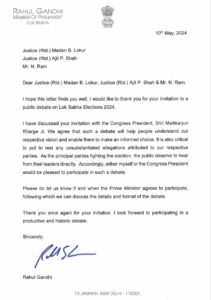 Acknowledging the letter sent to him by two former Judges and a Journalist, Congress leader Rahul Gandhi has said, he was ready for a debate with PM Narendra Modi or anybody else on an open platform.