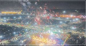 Between 6 and 7 pm, a grand fireworks display lit up the riverfront, followed by a spectacular laser show organized by the administration, further enhancing the divine atmosphere.