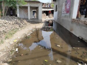 Pools of water having got converted into mud and mire in this summer heat has made their lives miserable. This was not recent but exists since more than two decades.